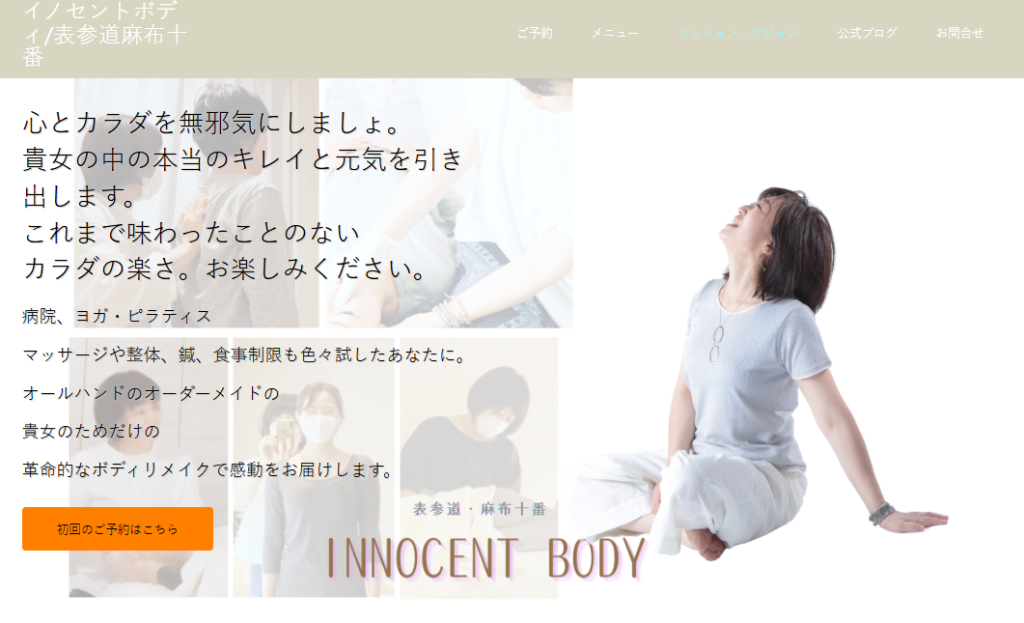 個人起業家のためのリブランディング | イノセントボディ表参道/麻布十番 イノセントボディ/表参道麻布十番 – 痛みや重さから劇的に解放美容整体このサイトが使用しているテーマはこちら